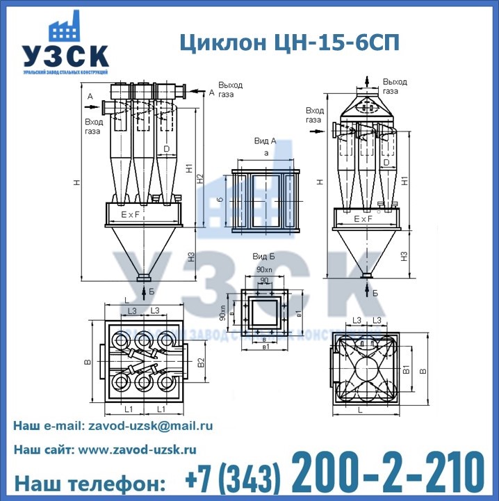 | ЦИКЛОН ЦН-15-900х6СП | 2700 | 2800 | 1624 | 604 | 1580 | 980 | 300 | 440 | 5430 |