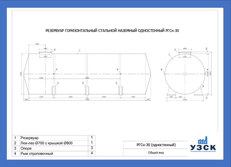 РГСн-30: горизонтальный резервуар одностенный наземного расположения;